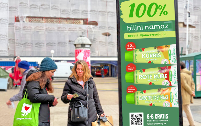 Hodajuće reklame provedene su kao ciljana terenska aktivacija za brend Green Lilly, specijaliziran za 100 % biljne, proteinski bogate namaze u praktičnoj tubi. Aktivacija je bila usmjerena na degustaciju proizvoda, povećanje svijesti o ključnim
