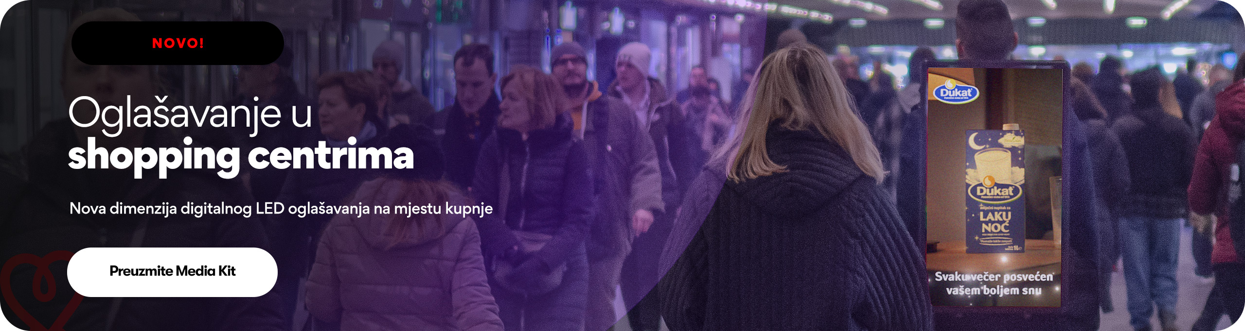 Hodajuće reklame su radi svog dosega kao i interakcije s prolaznicima odličan i efektan medij. Koristimo ga kod svih većih lokalnih i nacionalnih kampanja kao jedan od kanala te ga planiramo koristiti i u budućnosti.