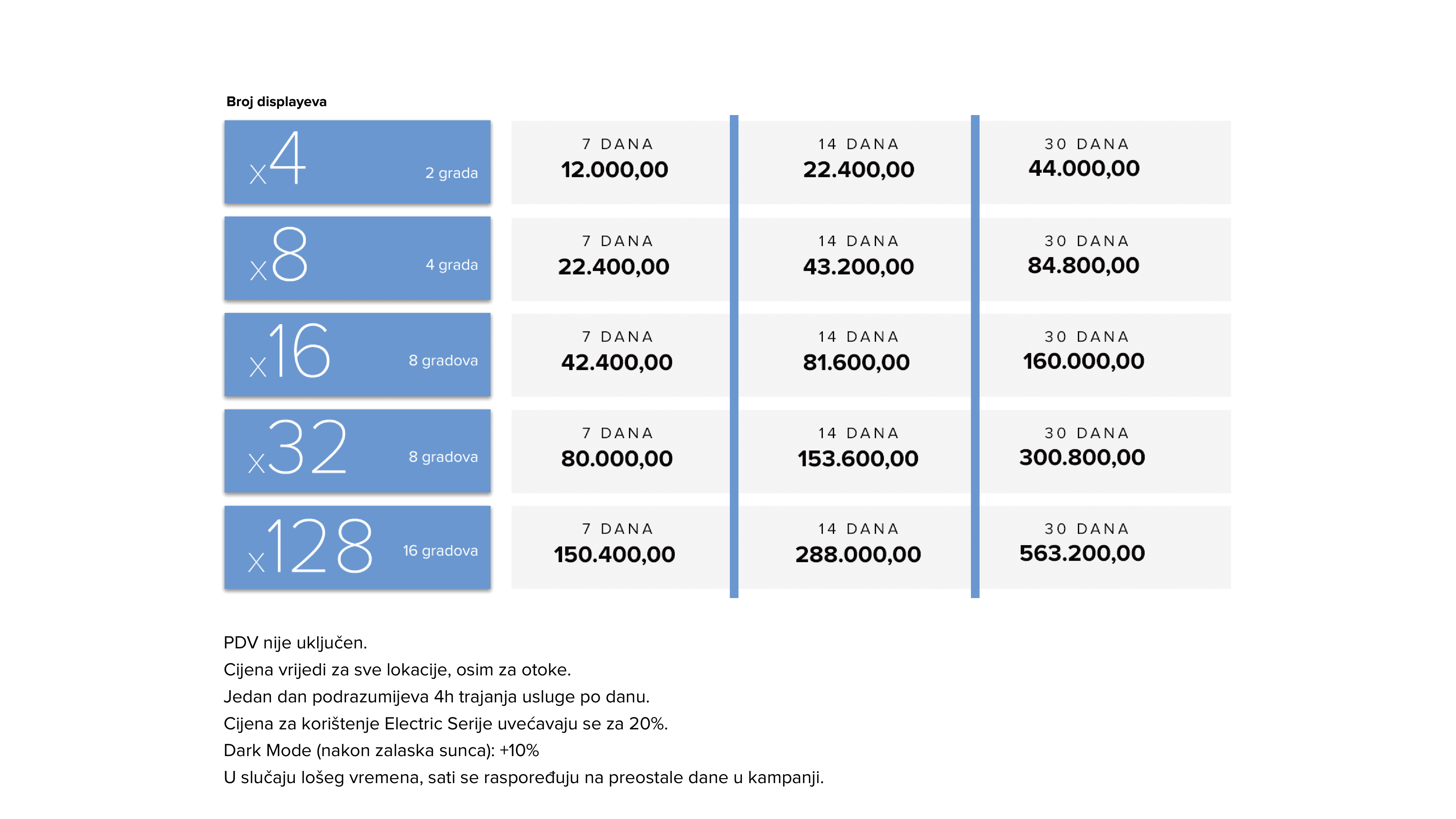 Broj dolazaka: 500.000 Broj impresija: 1.900/h